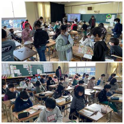 12月9日(金) VEGETABLES,FRUITS【4年外国語活動】 公開日 2022/12/09 更新日 2022/12/09 4年 今週の4年生の外国語活動の授業のようすです。ALTの先生と担任の先生と一緒にフルーツや野菜の英語を使った表現を楽しみました。