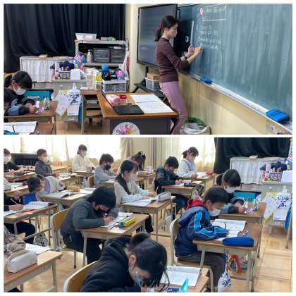 今週の4年生の算数の授業のようすです。「がい数のわり算のしかたを考えよう」というめあてで学習を進めていました。複雑な数もがい数の考え方を使うと、簡単な計算で大まかなわり算の答えが求められて便利ですね。