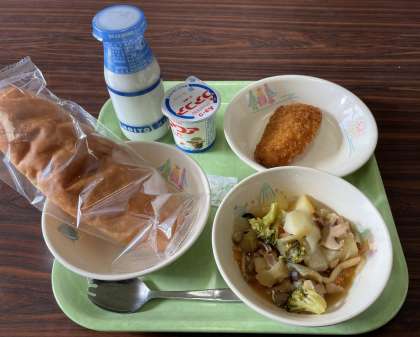 12月7日(水) 今日もおいしくいただきま〜す 公開日 2022/12/07 更新日 2022/12/07 ひがしっ子ライフ こめこパン、ぎゅうにゅう、じゃがいものベーコンに、しろみざかなのフライ、ヨーグルト じゃがいものベーコン煮には、ブ ロッコリーが入っています。ブロッ コリーは、黄色い花が咲く前の固いつぼみを食べる野菜です。ブロッコ リーには、カロテンやビタミンCがたくさん含まれており、冬の時期のビタミン補給に役立ちます。