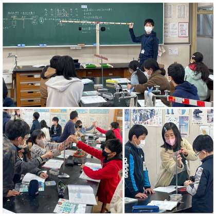 12月9日(金) つりあうとは【6年理科】 公開日 2022/12/09 更新日 2022/12/09 6年 今週の6年生の理科の授業のようすです。理科室で、実験用のてこのうでを使って、距離と重さの関係について調べるためのデータを集めていました。つりあったときの2つの数量の関係から、どんなことが言えそうかな。予想通りだったかな。