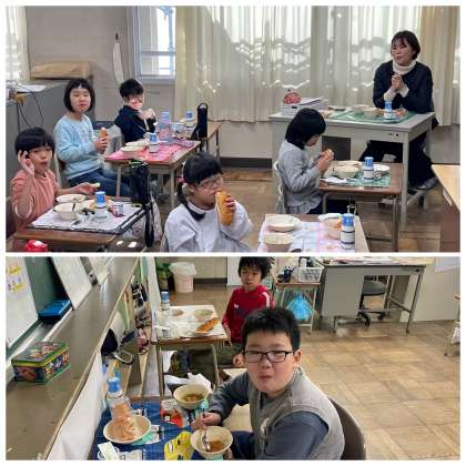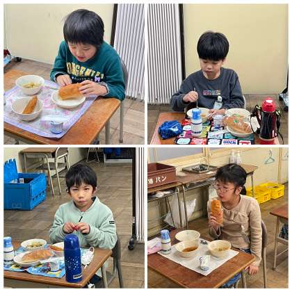 12月7日(水) 給食の時間のようす【ひまわり組】 公開日 2022/12/07 更新日 2022/12/07 ひまわり組 ひまわり組さんの給食の時間のようすです。みんなで協力して準備し、今日もおいしくいただきました。こめこパンは、もっちりしておいしかったですね。