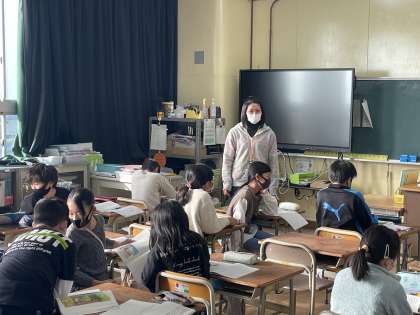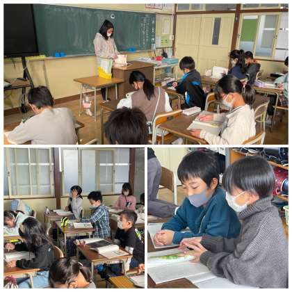 4年生の国語の授業のようすです。「プラタナスの木」を読んで、「初めて聞いた感想を書こう」というめあてで学習を進めていました。感じたことを上手に文で表現できたかな。