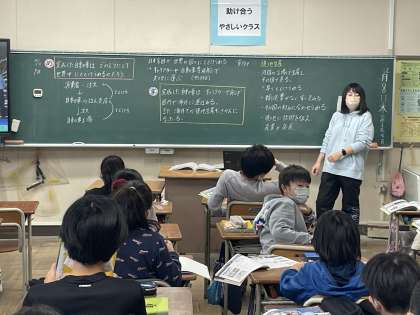 5年生の社会科の授業のようすです。「完成した自動車は、どのようにして世界中に届けられるのだろう」というめあてで学習を進めていました。キャリヤカーや船で国内や海外に運ばれている様子を知ることができましたね。