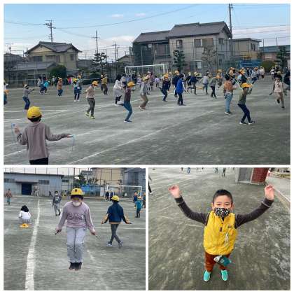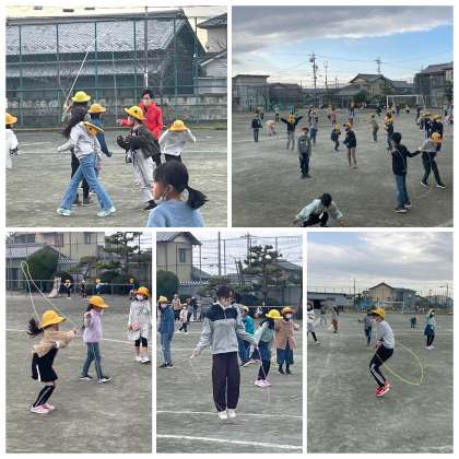 12月8日(木) 元気いっぱい長放課 公開日 2022/12/08 更新日 2022/12/08 ひがしっ子ライフ 長放課の運動場のようすです。音楽のリズムに合わせて縄跳びの練習に一生懸命取り組んでいました。笑顔でたくさんとぶことができましたね。
