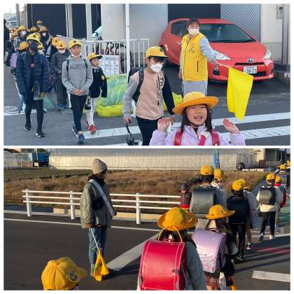 12月9日(金) 見守りありがとうございます! 公開日 2022/12/09 更新日 2022/12/09 PTA 下校時はあたたかくなりましたが、登校の時間帯は気温が一桁で冬らしい寒さとなりました。今日も校区の横断歩道や交差点では、PTA旗ボランティアさんや地域見守り隊の方たちが子どもたちを安全に誘導していただき、一日を元気にスタートさせることができました。ありがとうございました。12月も残りあと2週間になりますが、引き続きよろしくお願いいたします。