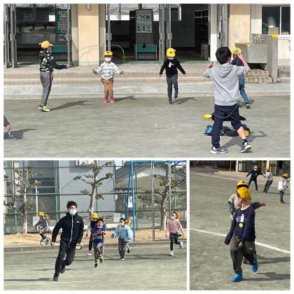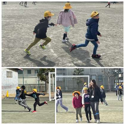 今週の長放課のようすです。鬼ごっこあそびをしている人が一番多く、先生たちも一緒にかけっこしていましたね。みんなでなかよく過ごすことができました。