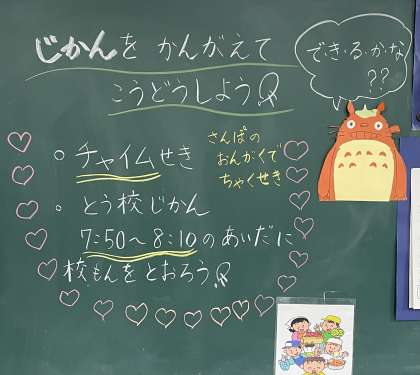 2月6日(月) じかんをかんがえて【1年黒板メッセージ】
