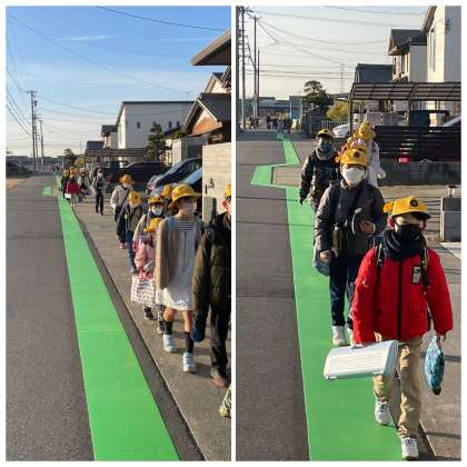 1月19日の記事でお伝えしました通学路のカラー塗装【グリーンベルト】の工事が完成し、先週から子どもたちがグリーンベルトを意識して登下校していますのでお知らせします。地図の通学路(黄色)の緑色の部分になります。