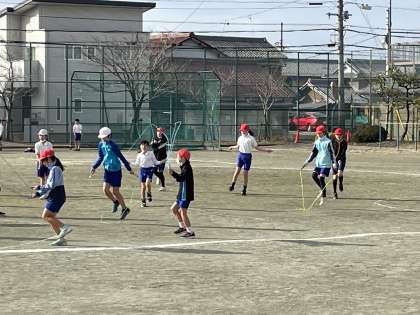 4年生の体育の授業のようすです。音楽のリズムに合わせて、いろいろなとび方ができるように挑戦していました。12月よりもずいぶんとべる回数や技が増えてきましたね。