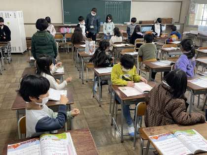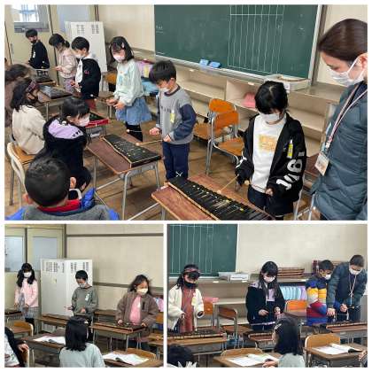 2年生の音楽の授業のようすです。「汽車の走るようすを音楽で表そう」というめあてで学習を進めていました。木琴を楽しく演奏して汽車が走る雰囲気を表現することができましたね。