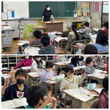 1年生の国語の授業のようすです。どうぶつの赤ちゃんの文章を読んで「カンガルーの赤ちゃんについてじぶんでよみとろう」というめあてで学習を進めていました。生まれたばかりのときには、とっても小さな赤ちゃんだということがわかりましたね。