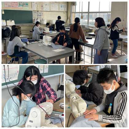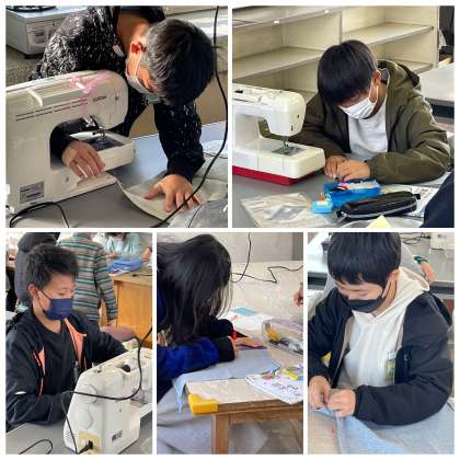 6年生の家庭科の授業のようすです。「2年間の学習を生かして、感謝の気持ちのこもったティッシュボックスカバーを作ろう」というめあてで学習を進めていました。今までの経験を生かして、ていねいに作業を進めることができましたね。