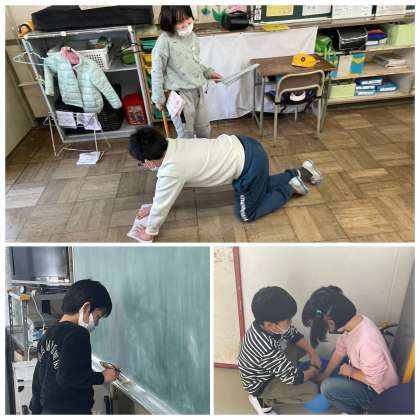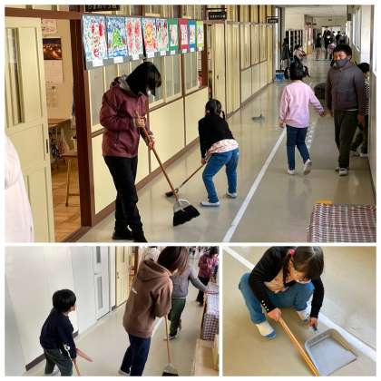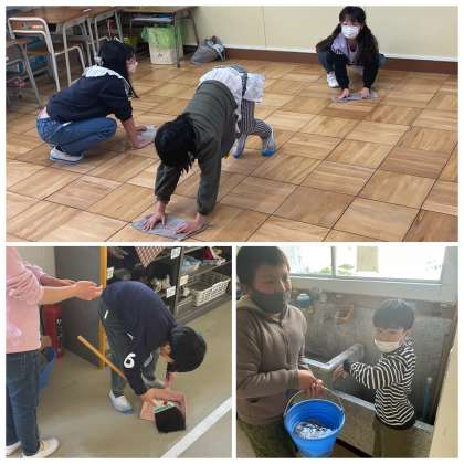 ひまわり組さんの掃除の時間のようすです。みんなで協力して教室や廊下がきれいになるようにがんばっていました。すみずみまで丁寧にほうきやぞうきんをかけることができましたね。