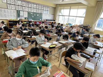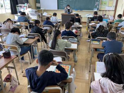 3年生の国語の授業のようすです。「3年生で学んだ漢字の復習をしよう」というめあてで、漢字の読みや書き取りの練習に取り組んでいました。とても集中してがんばることができていてすばらしかったです。