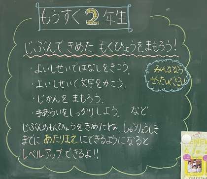 3月7日(火) もうすぐ2年生【1年黒板メッセージ】