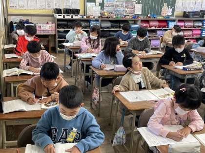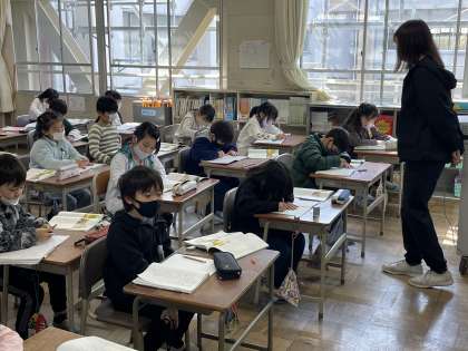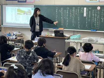 2年生の国語の授業のようすです。「スーホの白い馬」について「とのさまのところからにげ出す白馬のようすを考えよう」というめあてで学習を進めていました。