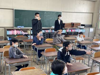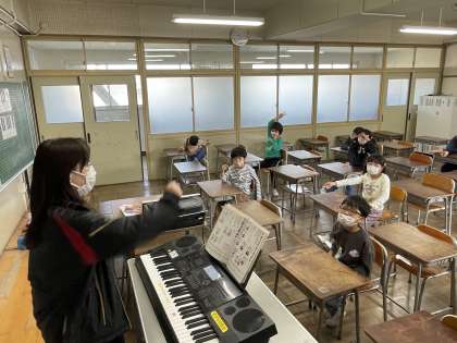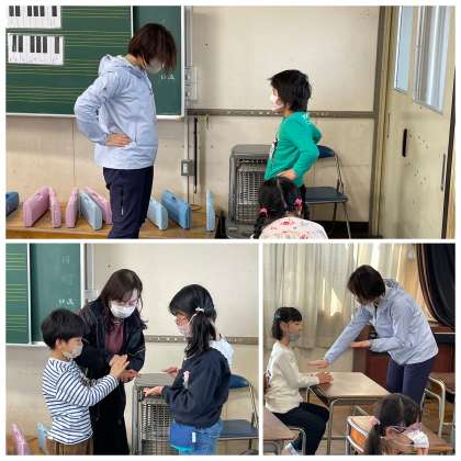 ひまわり組さんの音楽の授業のようすです。「♪なべ なべ そこぬけ♪」「♪そこがぬけたら かえりましょ♪」ペアで音楽に合わせて歌ったり動作をつけたりして表現しました。みんなで楽しくリズムを感じながら歌うことができましたね。