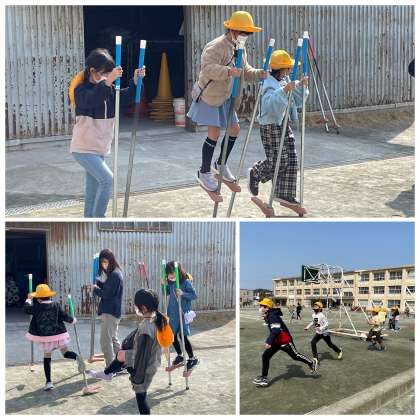 午前の長放課のようすです。今日は4月下旬並みの暖かさだとか。まぶしい青空のもと、元気いっぱい体を動かすことができましたね。竹馬がとても上手になってきて、先生もびっくりしていましたね。練習は裏切りません。遊びも学びもいろんなことに挑戦し続けることが成長につながってくことを竹馬が教えてくれましたね。