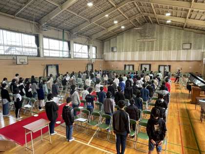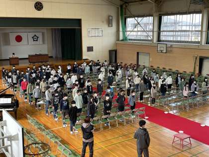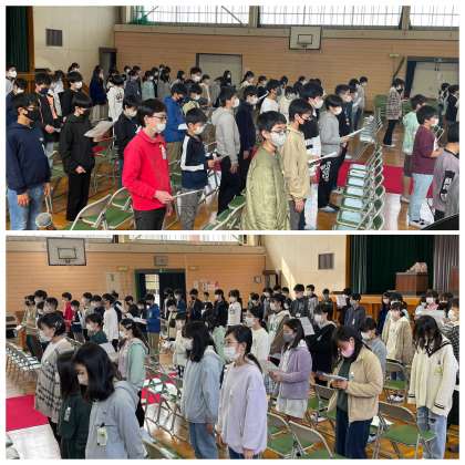 6年生の卒業式に向けた学年練習のようすです。「別れの言葉と旅立ちの歌」の部分の練習です。6年間を振り返って、今どんな気持ちでいるのか。ことばを大切にして思いを伝えようとがんばっていました。みんなで作り上げる最後の行事を最高の形でしめくくりたいという決意が伝わってきます。