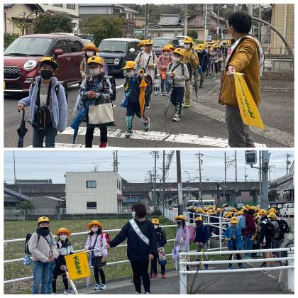 雨が心配な朝になりましたが、PTA旗ボランティアさんや地域のみなさんに見守られて、無事登校完了することができました。ありがとうございました。登校もいよいよ明日の修了式を残すのみとなりました。新しい班での移動もずいぶん慣れてきたようですが、何事も慣れてきたころに油断が生じてしまうものです。最後まで安全第一に行動できるように、学校でも声をかけたいと思います。家庭でお子さんに、地域から近所の子に、励ましや応援をよろしくお願いいたします。