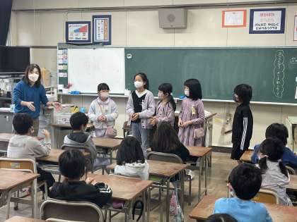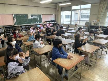 2年生の学級の時間の様子です。お楽しみの時間で「マジカルバナナ」に挑戦していました。「バナナといったらすべる」「すべるといったらスキー」リズムに乗って上手く連想した言葉をつなげることができたかな?