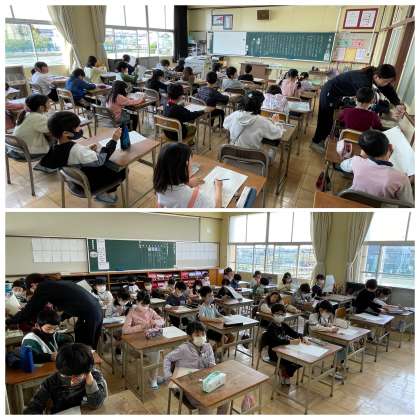 4月11日(火) 朝の時間のようす【3年生】 公開日 2023/04/11 更新日 2023/04/11 3年 3年生の朝の時間の様子です。担任の先生に読み聞かせをしてもらったりや算数の復習問題などに取り組んだりしていました。写真は3組と4組です。