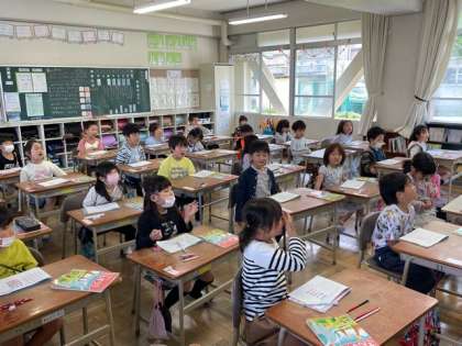 1年生の算数の授業のようすです。「6はいくつといくつかかんがえよう」というめあてで学習を進めていました。