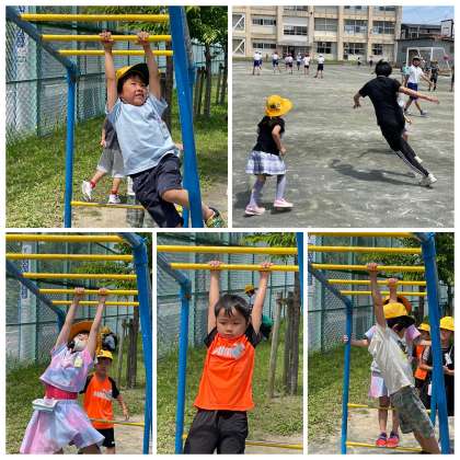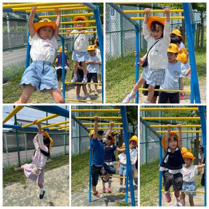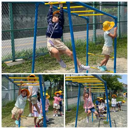 午前の長放課のようすです。うんていで端から端まで行けるようにがんばっていました。途中で止まっても大丈夫!少しずつできる距離が長くなっていきますよ!ファイトです♪