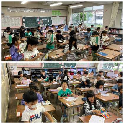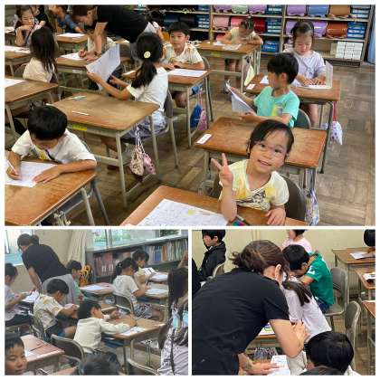 6月6日(火) ひらがなの「れ」【1年国語】 公開日 2023/06/06 更新日 2023/06/06 1年 1年生の国語の授業のようすです。ひらがなの「れ」の形の特徴について考え、ていねいに練習していました。「れ」のつくことばもたくさん見つけることができましたね。