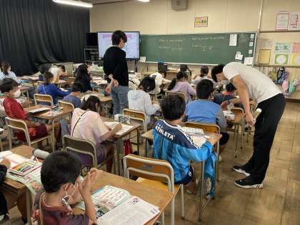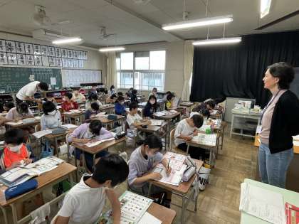 5年生の外国語活動の授業のようすです。友だちへの誕生日カードに英語でメッセージを書いていました。どんなメッセージを送ることにしたかな。きっと喜んでくれますね。