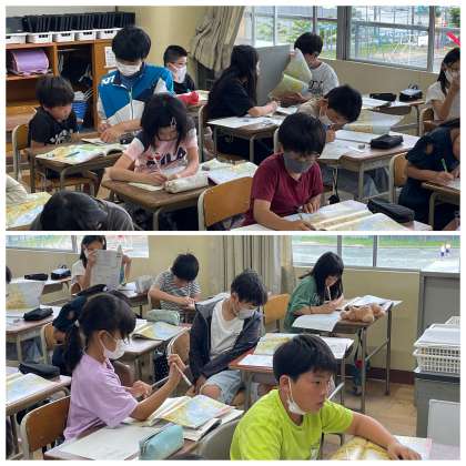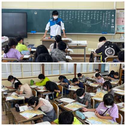 4年生の社会の授業のようすです。「都道府県を使った文を考えて書こう」というめあてで学習を進めていました。いろんな都道府県の特徴を知ることができましたね。