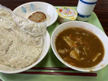 6月6日(火) 今日もおいしくいただきま〜す! 公開日 2023/06/06 更新日 2023/06/06 ひがしっ子ライフ ソフトめん、牛乳、カレー南蛮ソフトめん(しる)、キャベツ入りつくね、とうにゅうプリン