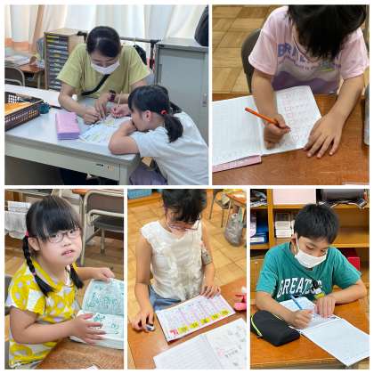 ひまわり3組さんの今日の授業のようすです。漢字の書き取りや計算の練習などに一生懸命取り組んでいました。
