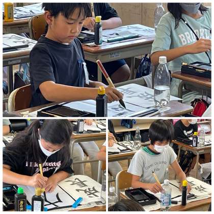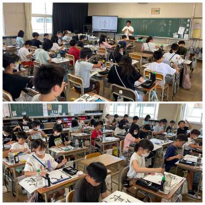 5年生の書写の授業のようすです。「筆順と字形に気をつけて『成長』の文字を毛筆で書こう」というめあてで学習を進めていました。一画の長さやはねの形に気をつけて書くことができましたね。