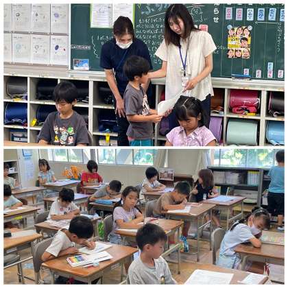 7月6日(木) ひらがな【1年国語】 公開日 2023/07/06 更新日 2023/07/06 1年 1年生の国語の授業のようすです。ひらがなの学習に取り組んでいました。書き順や形に気をつけて、ていねいに書くことができましたね。