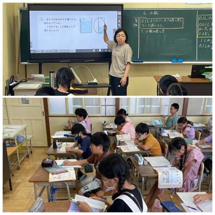 7月6日(木) 小数【4年算数】 公開日 2023/07/06 更新日 2023/07/06 4年 4年生の算数の授業のようすです。「0.1Lよりも小さいかさの表し方について調べよう」というめあてで学習を進めていました。
