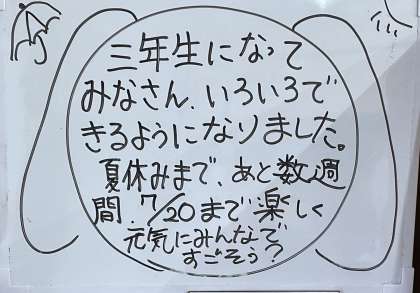 7月7日(金) 楽しく元気に【3年黒板メッセージ】