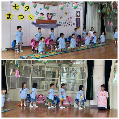 7月7日(金) 七夕まつりを参観しました【大和保育園】 公開日 2023/07/07 更新日 2023/07/07 校長室便り 一宮尚正会大和保育園さんから七夕まつりの案内をいただきましたので、学校を代表して参観させていただきました。乳児さんから幼児さんまで、みんなのかわいい後輩たちがとても素敵な歌や踊りを披露してくれましたよ。すてきな時間をありがとうございました!
