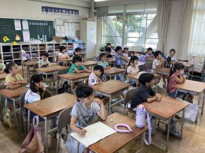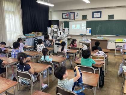 今日はオンラインで一宮市と学校をつないで、一宮警察の方や教育委員会の方からお話を聞きました。夏休みに向けて気をつけて生活してほしいと警察の方が心配してくれていることがよくわかりましたね。悲しい事故に巻き込まれたり、自分で起こしたりしないように、気をつけていきましょう!