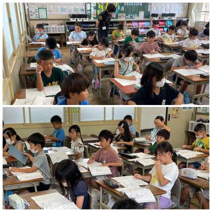 7月11日(火) 10がなんこあるかな【2年算数】 公開日 2023/07/11 更新日 2023/07/11 2年 2年生の昨日の算数の授業のようすです。「10がなんこあるかをもとにして数をしらべよう」というめあてで学習を進めていました。