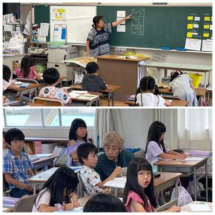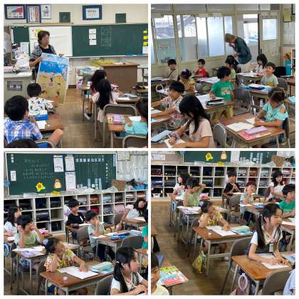 1年1組の昨日の算数の授業のようすです。3枚のカードに絵を描いていました。1つはたすカード、1つはたされるカード、そして最後は答えのカードです。楽しく計算の勉強できそうですね。