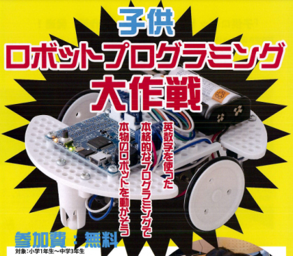 地域の方から夏休みのイベント「子どもロボットプログラミング大作戦」の紹介を受けましたので、校内に掲示するとともにウェブ記事でもお知らせいたします。参加ひま無料、対象は小学1年生から中学3年生までです。8月19日はiビルで開催されます。プログラミング三興味がある人は、ぜひ参加してみませんか。