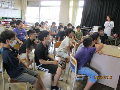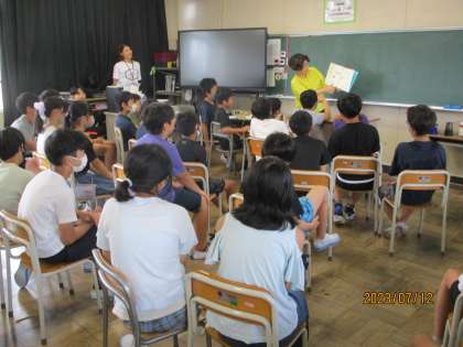 今日は子どもたちが楽しみにしていた7月の読み聞かせボランティアデーです。朝の時間を使って、読み聞かせボランティアさんがとっておきの本を紹介してくださいました。6年2組の活動のようすを紹介します。