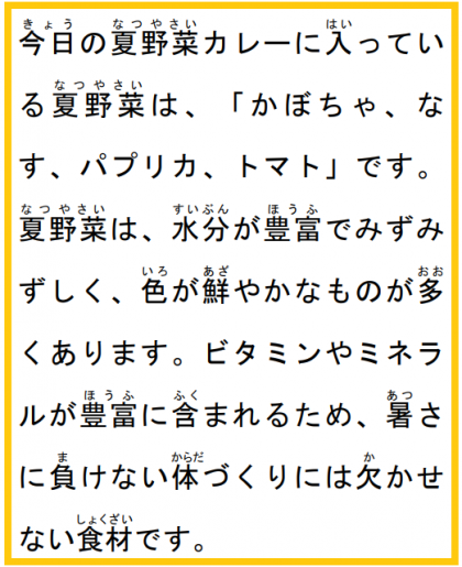 ごはん、牛乳、夏野菜カレー、星のミックスジュレ