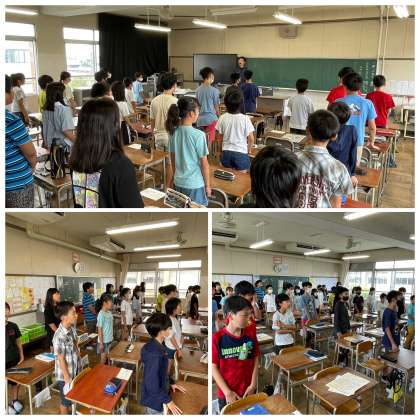 今日は金曜日!朝の学級の時間はハーモニータイムです。写真は6年1組の活動のようすです。声量豊かに「翼をください」を歌っていました。さすが6年生!響きがとてもすてきでしたよ!