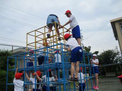 7月15日(土) 体育 ひまわり組 公開日 2023/07/15 更新日 2023/07/15 ひまわり組 7月14日(金)体育の様子です。1学期最後の体育でした。ジャングルジムを、皆で安全に使うことができました。2学期の体育も、安全に楽しく活動しましょう。 ひまわり組