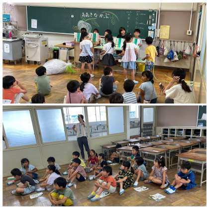 7月19日(水) 【1-2】おおきなかぶ 公開日 2023/07/19 更新日 2023/07/19 1年 1年2組の国語の授業のようすです。大きな株の音読劇を行っていました。グループで練習した成果をしっかり発揮して、すてきな劇ができました。楽しい時間になりましたね。
