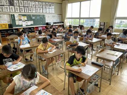 7月19日(水) 1学期のまとめ【4年生】 公開日 2023/07/19 更新日 2023/07/19 4年 4年生の授業のようすです。「1学期のまとめをしよう」というめあてで、学習をすり替えるプリントに挑戦していました。1組は理科(上)、3組は社会(中)、4組は国語(下)に取り組んでいました。とても集中してがんばっていましたね。