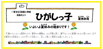 ひがしっ子第9号(夏休み号)では、夏休みの生活で心がけることや気をつけることなどがまとめられています。おうちの方とも確認して、充実した生活ができるように応援してもらいましょう!