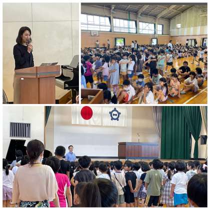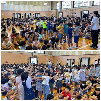 1学期終業式は、1学期の学習がすべて終了した証として行う節目の大切な式です。静かに全校児童が集まり、自分の頑張りを振り返りながら、まわりの人の支えに感謝する式にできましたね。さすがひがしっ子です!すばらしい態度で感心しました。
